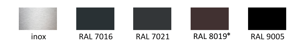 The wide range of colours in the series includes colours such as: INOX (brushed stainless steel), RAL 7016 (anthracite), RAL 7021 (graphite), RAL 8019 (dark brown) and RAL 9005 (black), allows you to find the perfect match for any fencing system.